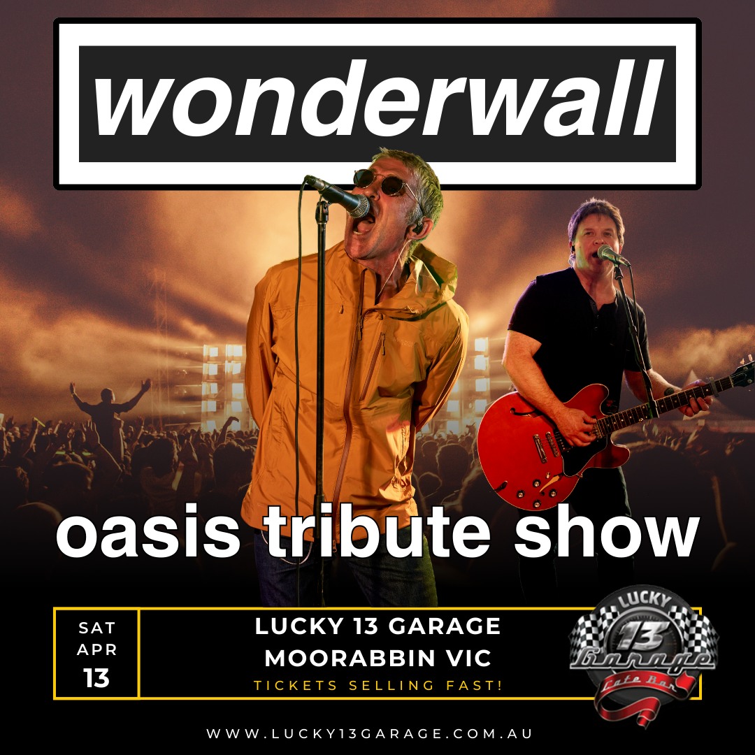 OASIS FANS THE WAIT IS OVER! LUCKY 13 GARAGE MOORABBIN proudly presents WONDERWALL OASIS TRIBUTE SHOW on SAT 13th APRIL 8pm!